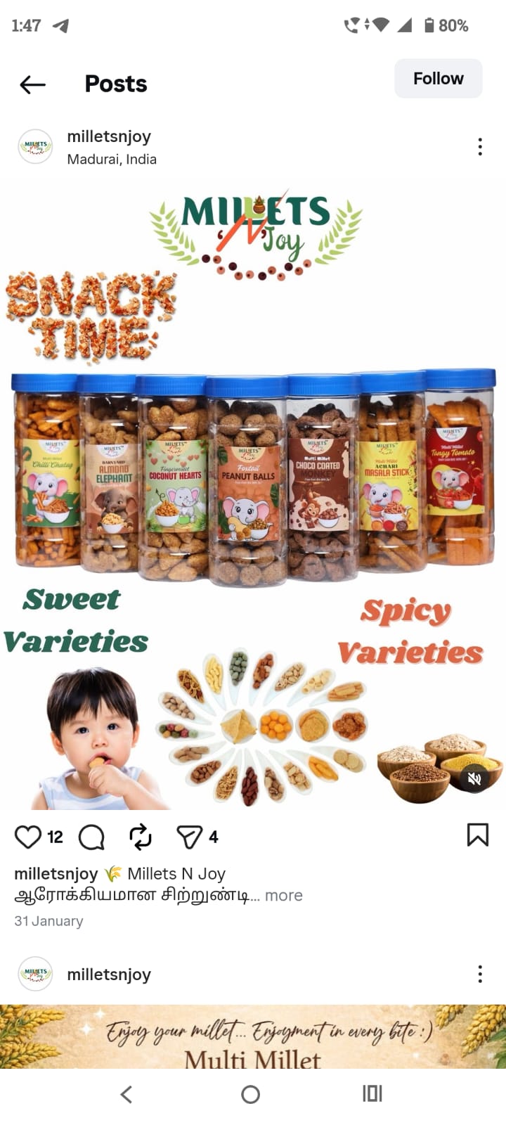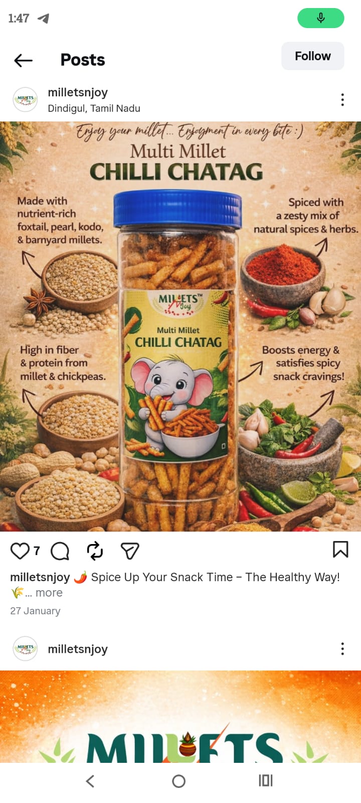 So when I recently saw another brand, Millet N Joy, copying my products, packaging style, jar concepts, speaking style, and even the posters I designed and shared on social media, it broke my heart in ways I can’t fully explain.